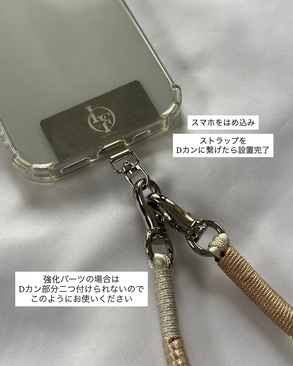 装着していただく仕様です。(写真3~5枚目参照)MULTI STRAPシリーズをお使いいただくためのコネクターのような役割を果たします。