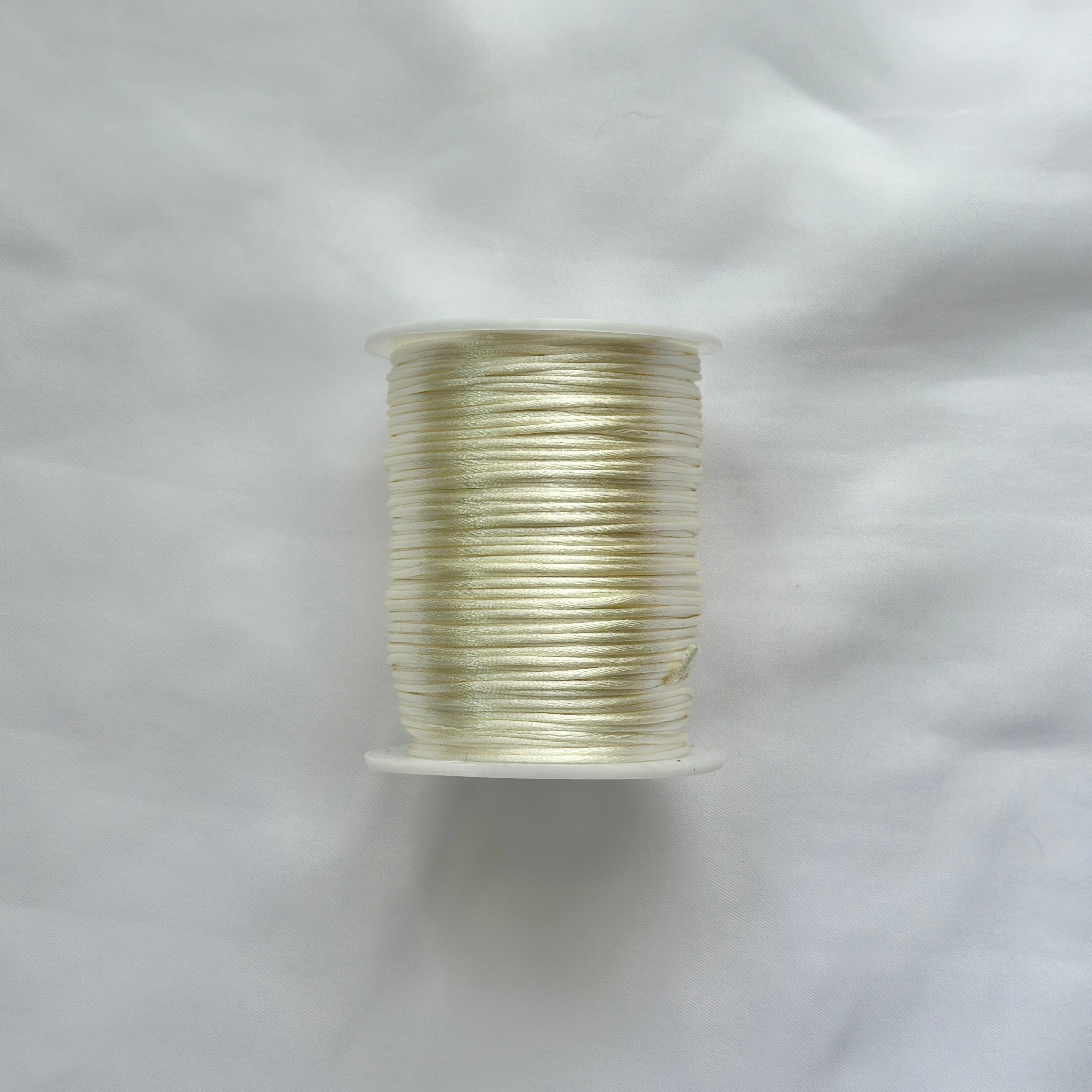サテンという言葉の通りさらりとして艶のある表面なので、少し滑りやすいのも特徴の一つです。結びに使用する場合は、目の詰まった結びにする or 一目一目に接着剤やグルーガンなどを施すと美しく仕上がります。