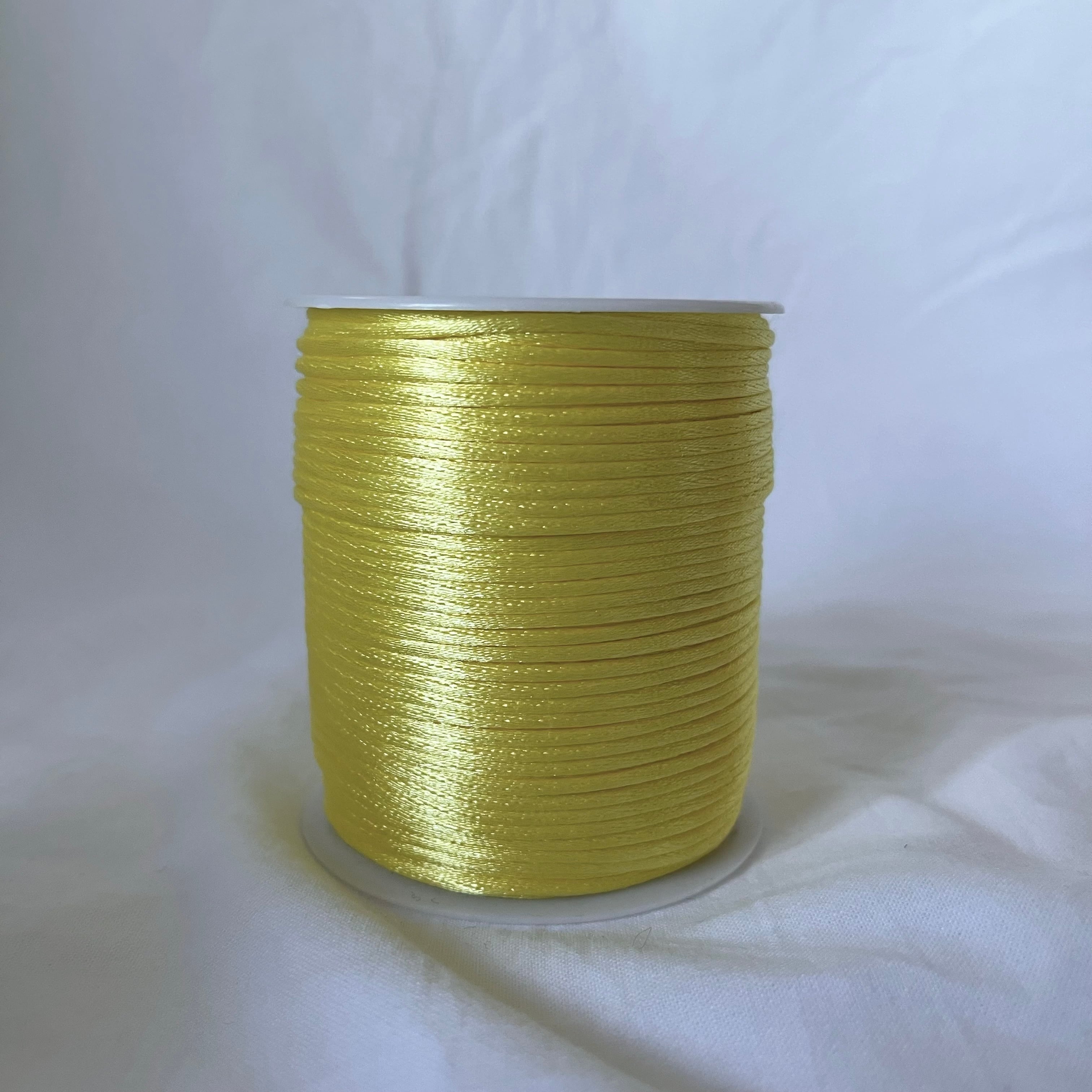 サテンという言葉の通りさらりとして艶のある表面なので、少し滑りやすいのも特徴の一つです。結びに使用する場合は、目の詰まった結びにする or 一目一目に接着剤やグルーガンなどを施すと美しく仕上がります。